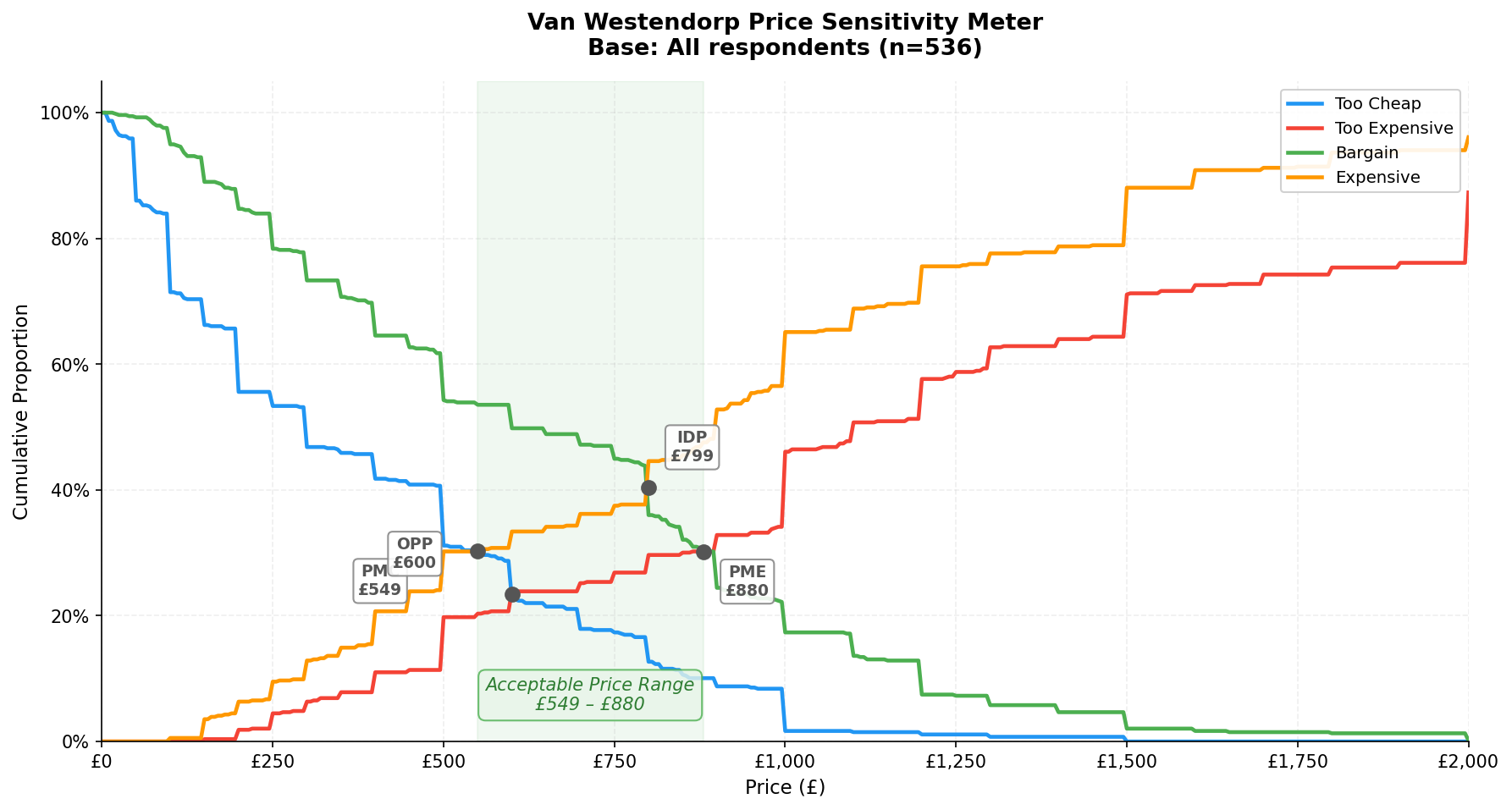 - Acceptable price range summary: The PMC-to-PME corridor with all four Van Westendorp intersection points